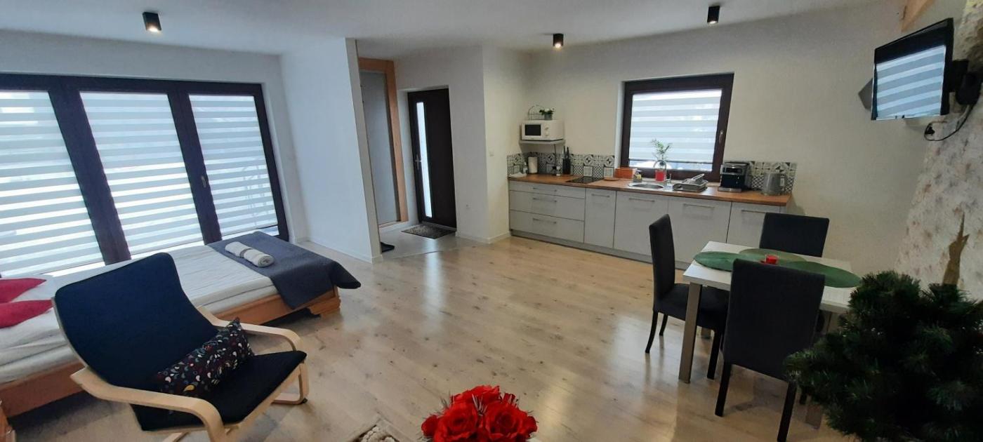 Apartament typu studio. Featuring a private entrance, this apartment also consists of 1 bedroom, a seating area and 1 bathroom with a shower and a hairdryer. Guests can make meals in the kitchenette that is equipped with a stovetop, a refrigerator, kitchenware and a microwave. Boasting a terrace with garden views, this apartment also provides a coffee machine and a flat-screen TV. The unit offers 2 beds. Apartament - 3 osobowy. Powierzchnia pokoju ok.: 42 mkw. ;