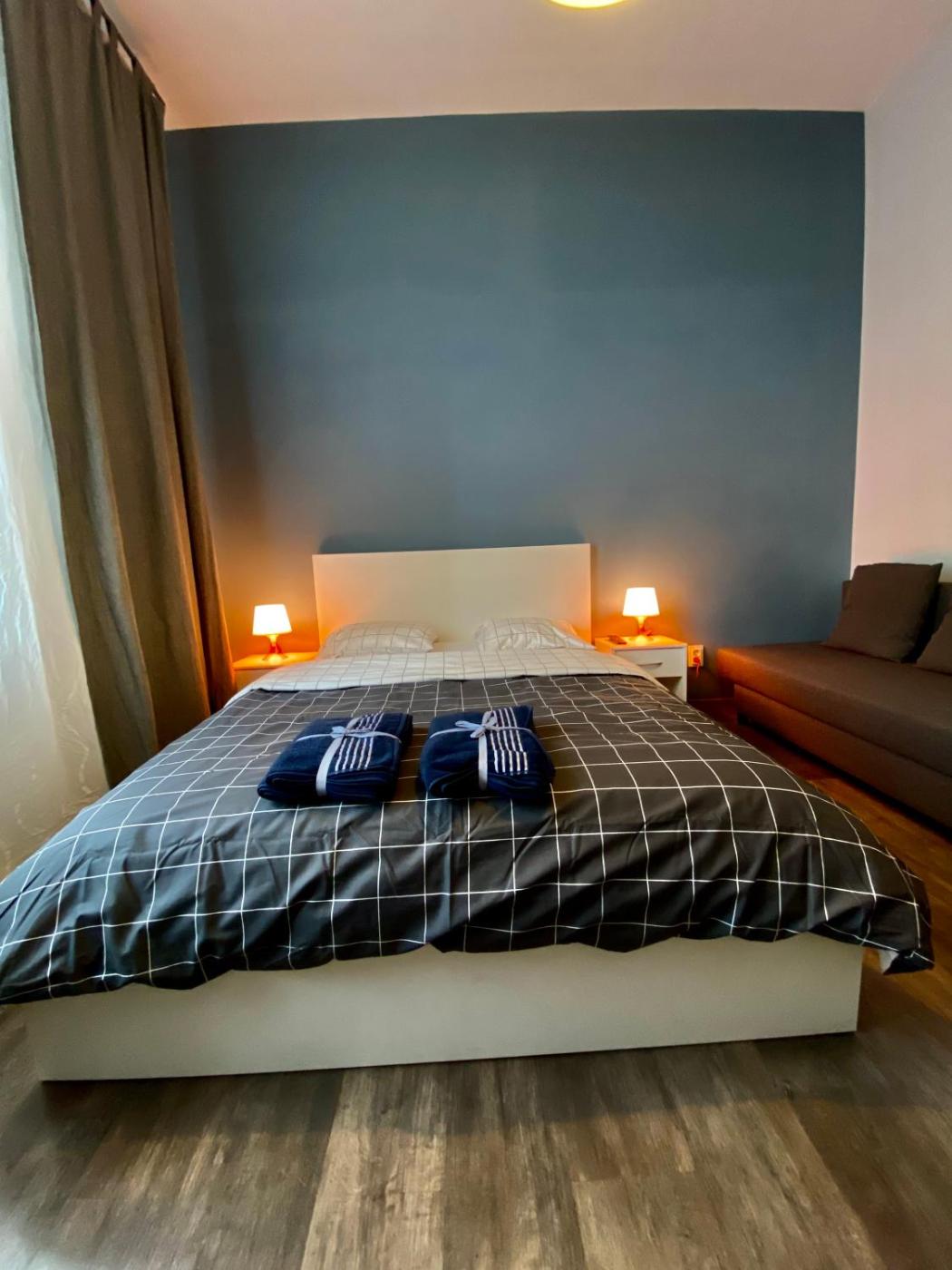 Apartament. This apartment consists of 1 bedroom, a kitchenette and 1 bathroom with a walk-in shower and a hairdryer. In the kitchenette, guests will find a stovetop, a refrigerator, kitchenware and a microwave. The apartment provides a flat-screen TV, a dining area, a wardrobe, an electric kettle as well as city views. The unit offers 2 beds. Apartament - 4 osobowy. Powierzchnia pokoju ok.: 20 mkw. ;